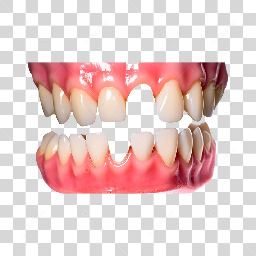 Elemento 3D Dentadura Faltando 2 Dentes Para Composição PNG Transpa...