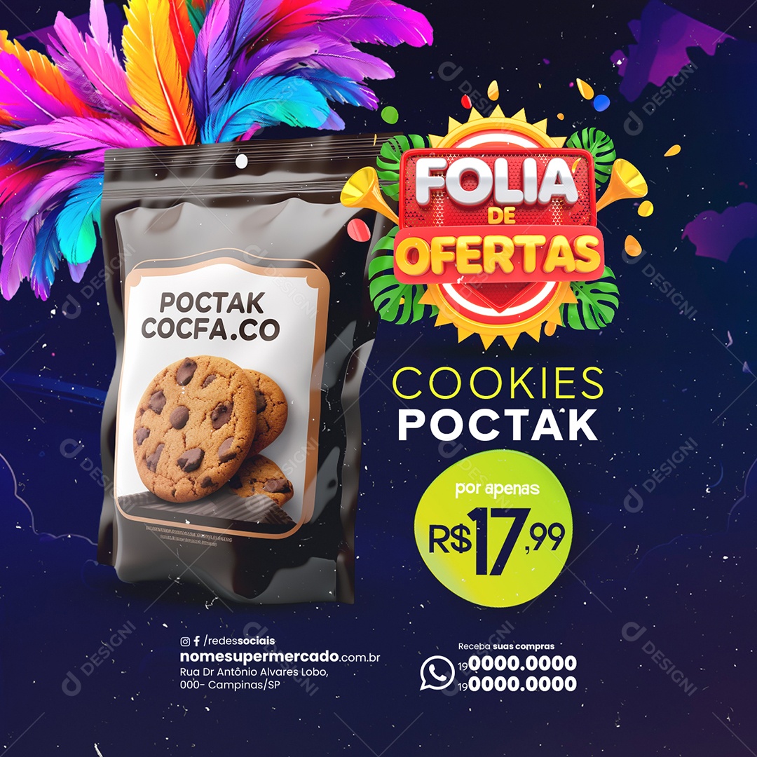Supermercado Carnaval Folia De Ofertas Cookies Poctak Social Media PSD Editável