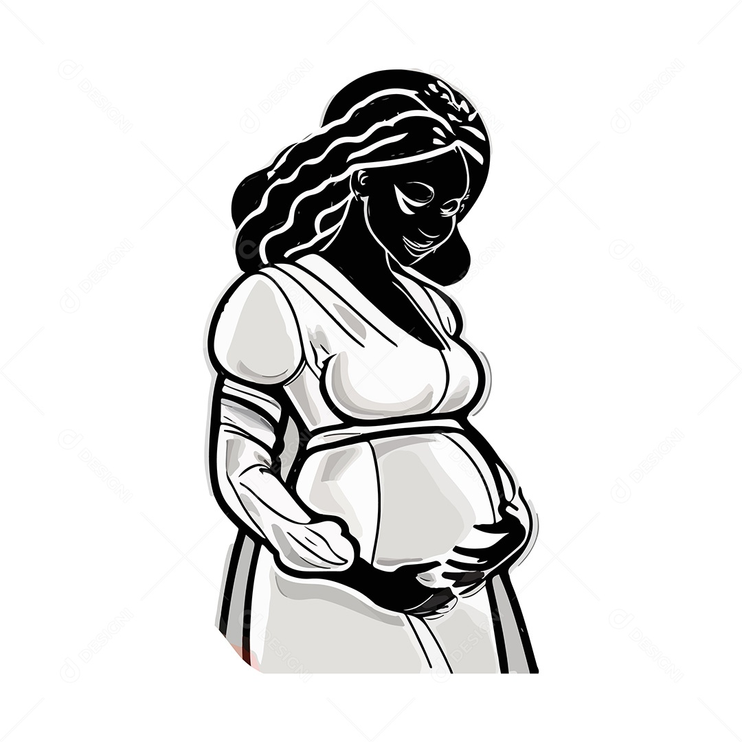 Desenho Mulher Negra Grávida Vetor Do Dia Das Mães EPS