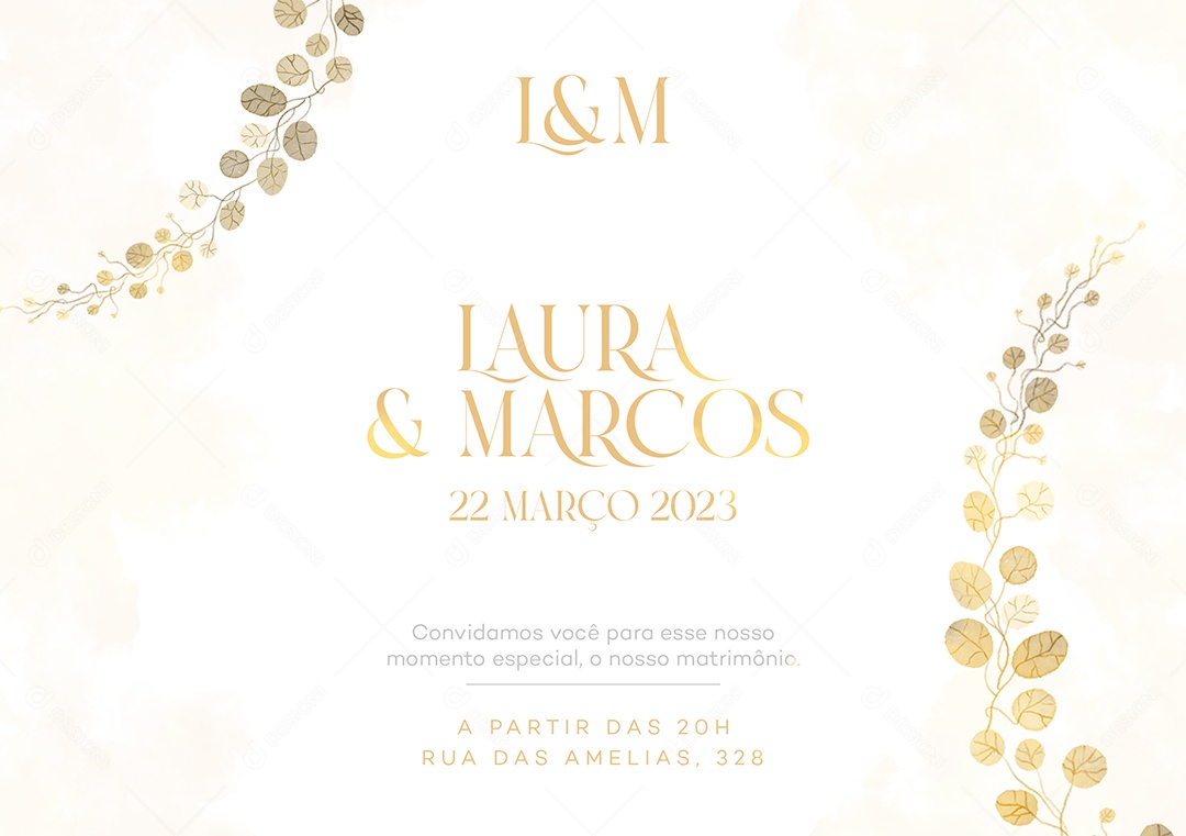 Modelo de Convite de Casamento Laura & Marcos PSD Editável