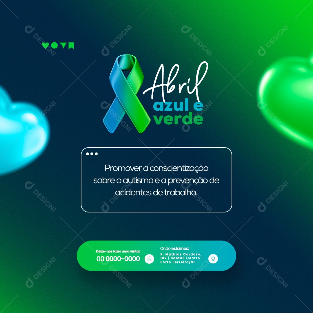Abril Azul e Verde Promover a Conscientização Sobre Autismo e Prevenção de Acidentes de Trabalho Social Media PSD Editável