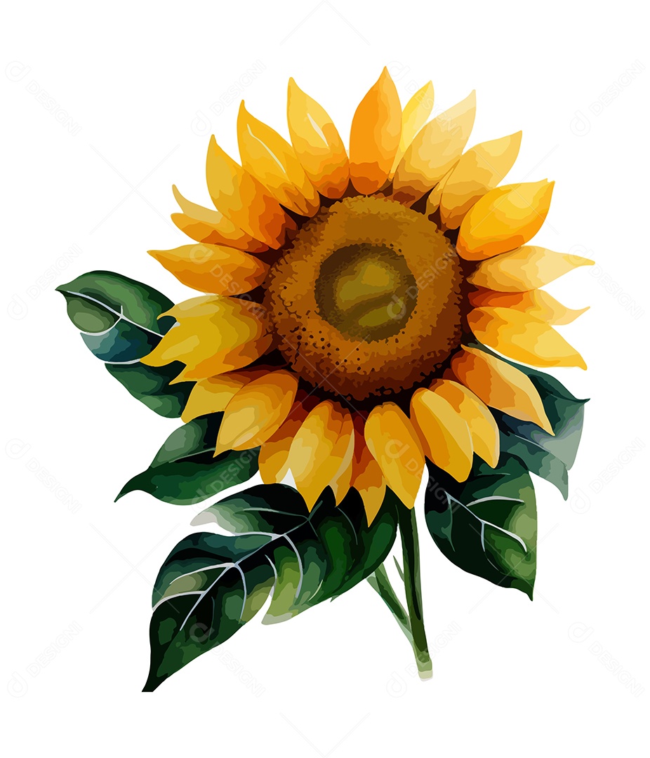 Desenho De Flor Girassol Em Aquarela Desenhada Á Mão Vetor EPS