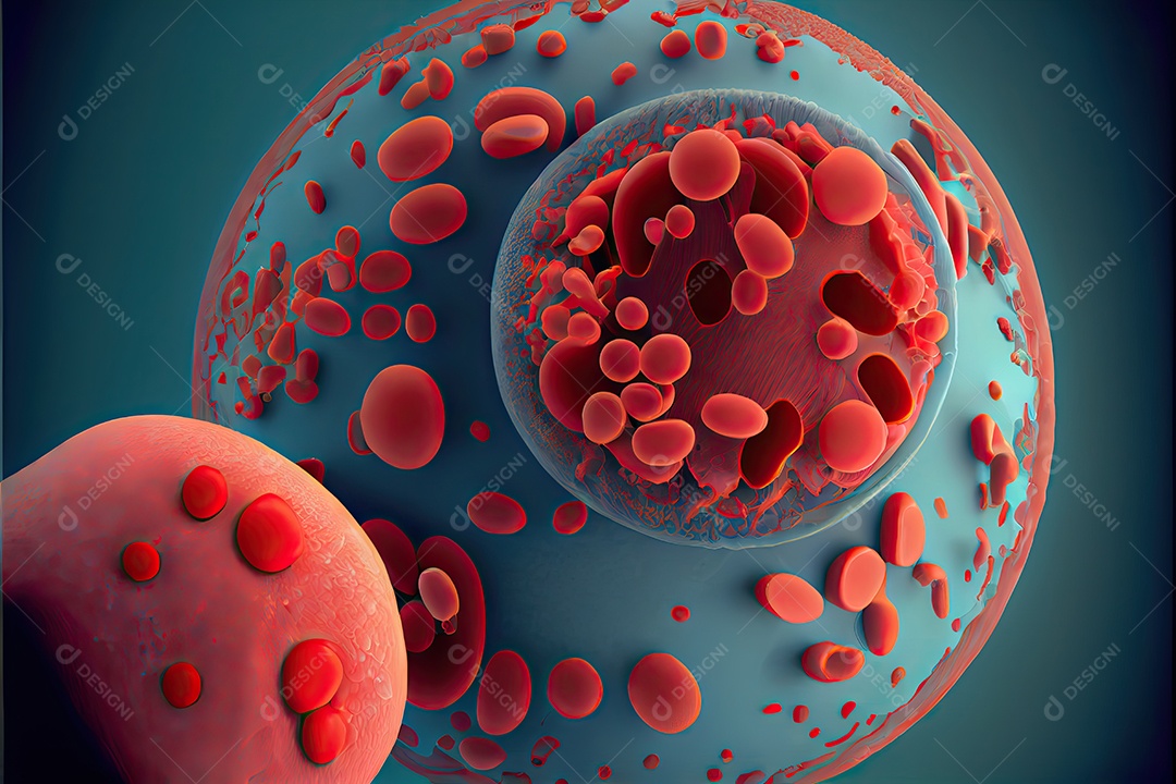 Células sanguíneas, renderização 3D realista dia mundial da malária 25 de abril