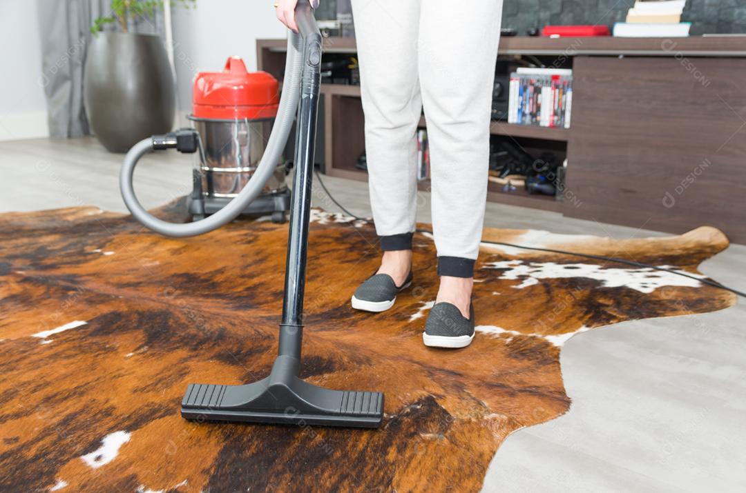 Grande conceito de limpeza doméstica, aspirar o chão, tapete.