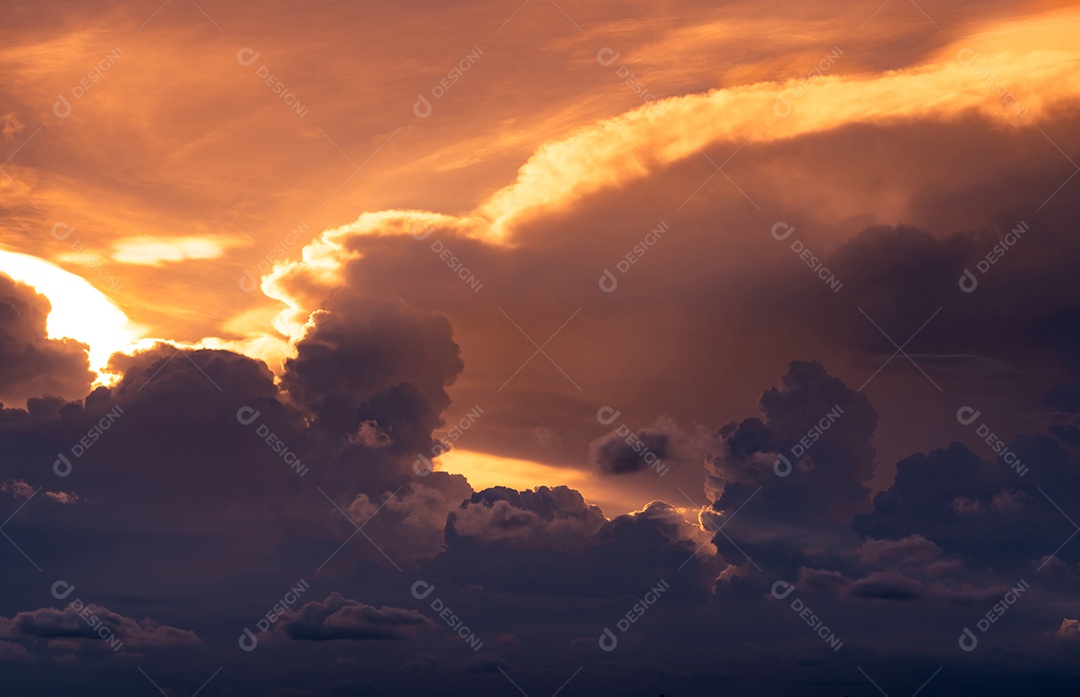Céu do sol. A luz dourada brilha em camadas de nuvens. nuvem fofa