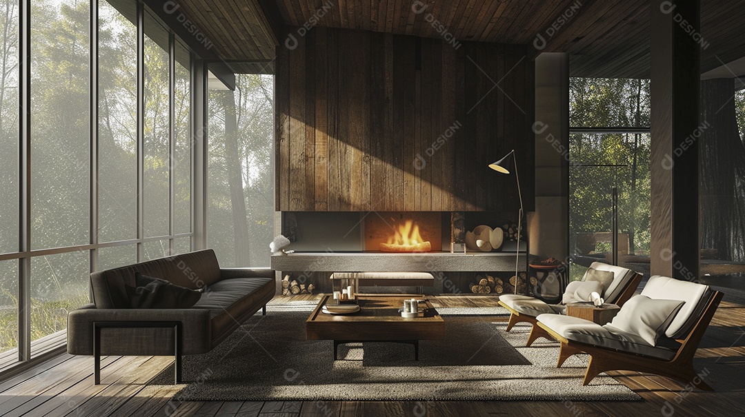 Sala de estar moderna com lareira na parede