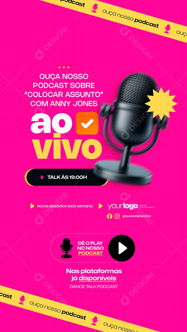 Story Podcast Ouça Nosso Podcast Ao Vivo Social Media PSD Editável