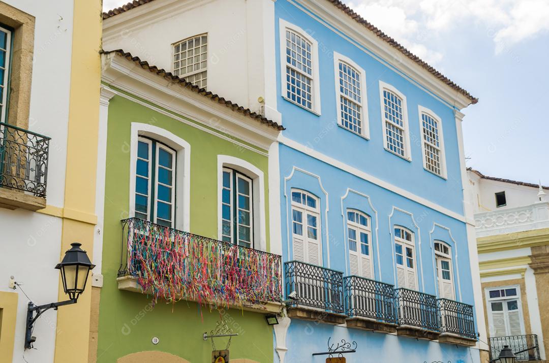 Vista brilhante e ensolarada do histórico centro turístico do Pelourinho, Salvador da Bahia, Brasil