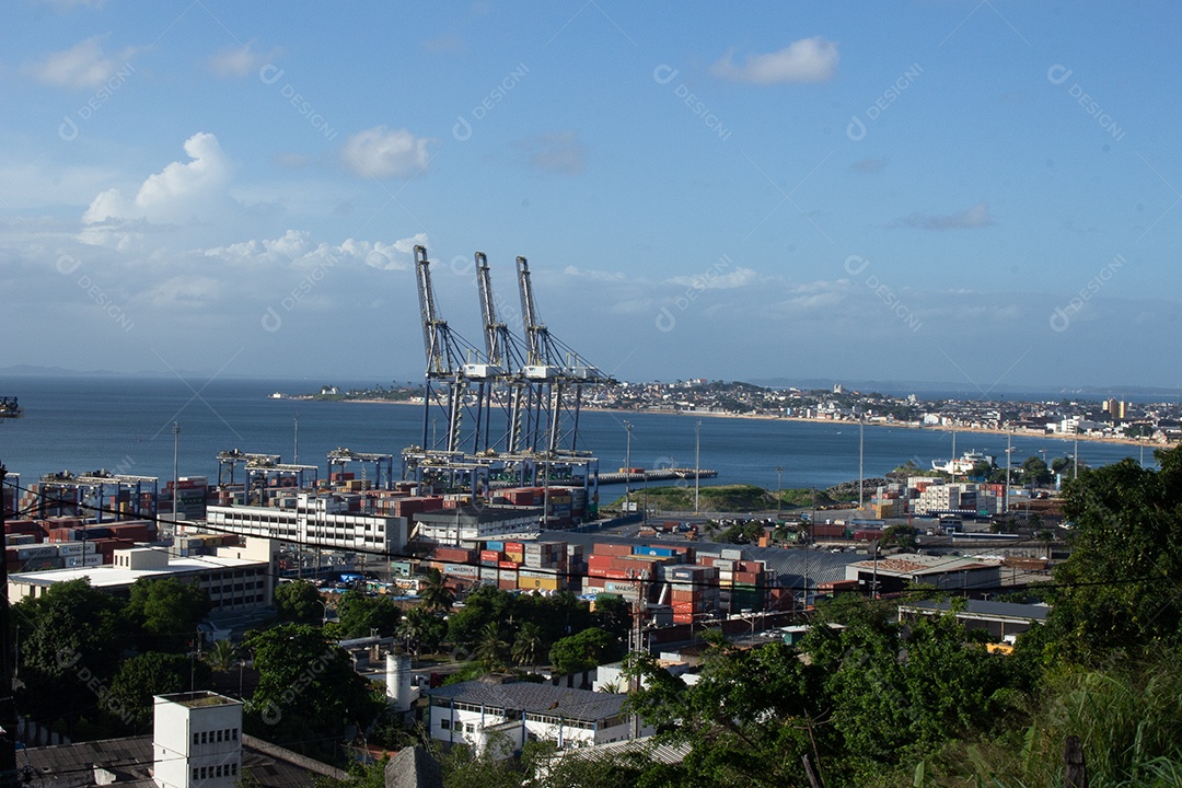 Bela vista do porto e docas da cidade de Salvador em um dia ensolarado