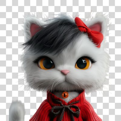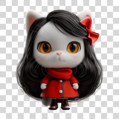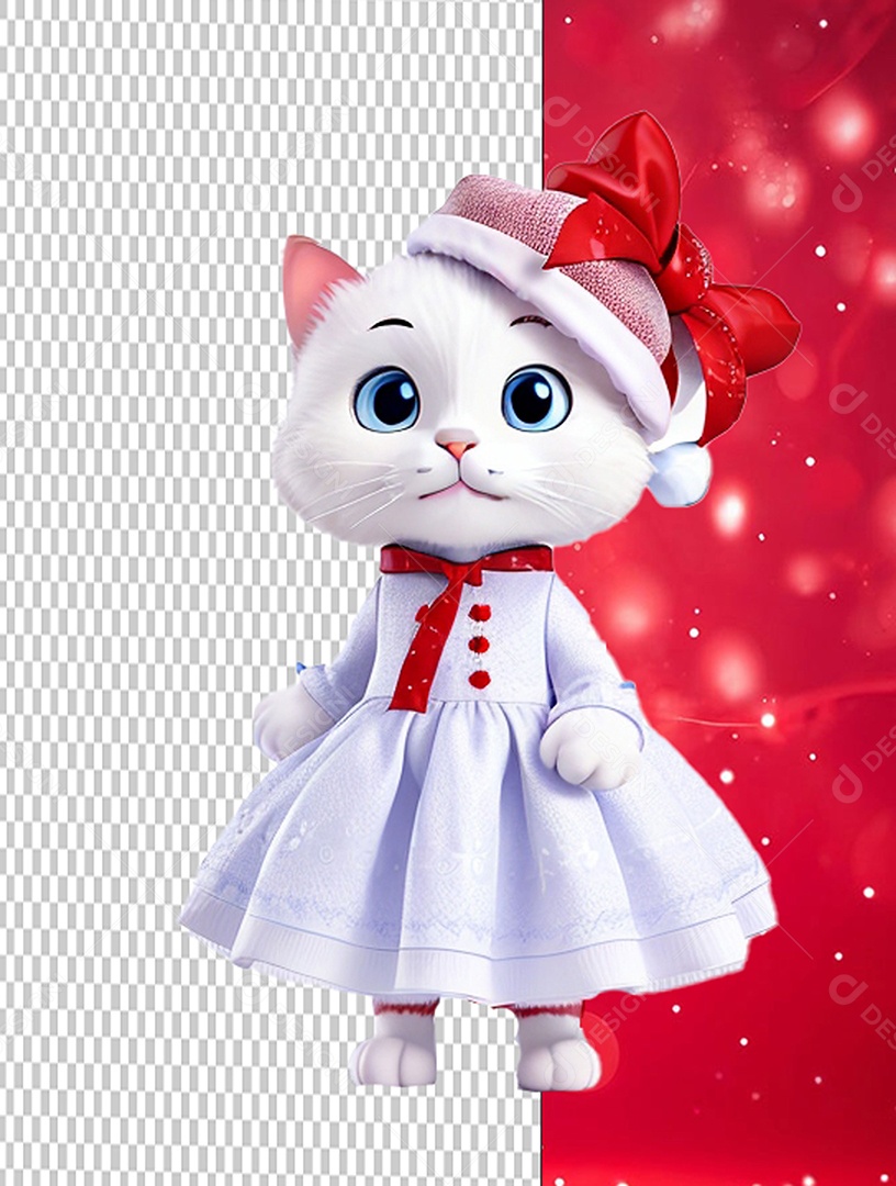 Gata Vestida de Branca com Chapéu de Natal Cartoon Elemento 3D para...