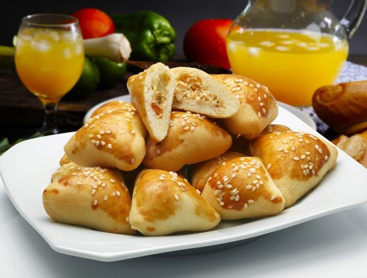 Esfiha assada ou assada, lanche de festa conhecido como salgadinho ...