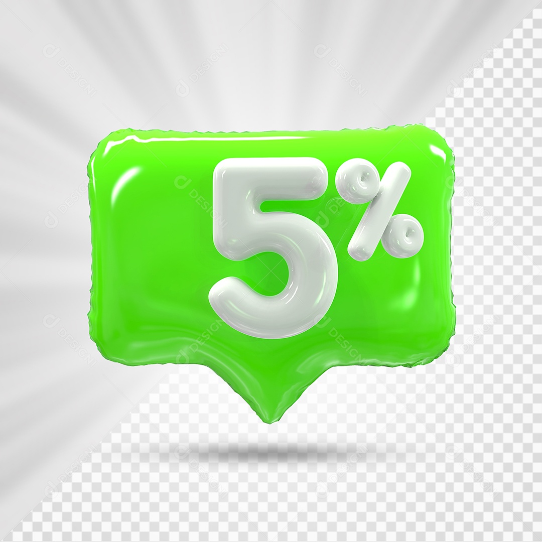Caixa de Desconto Número 3D 5% Verde Elemento Para Composição PSD