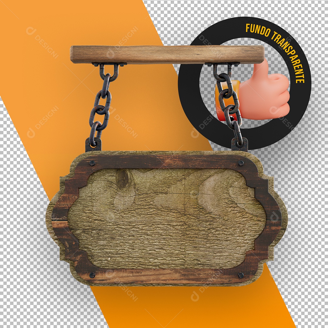 Placa de Madeira Despendurada com Correntes Elemento 3D para Compos...