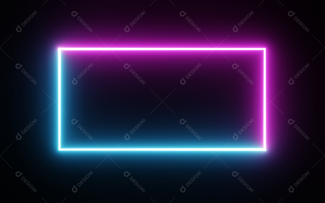 Moldura retangular quadrada com gráfico de movimento de cor neon de dois tons em fundo preto isolado. Luz azul e rosa movendo-se para o elemento de sobreposição.