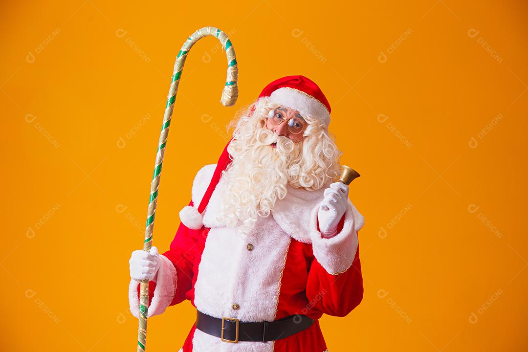 Papai Noel com sino em fundo amarelo. lindo papai noel
