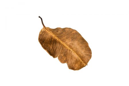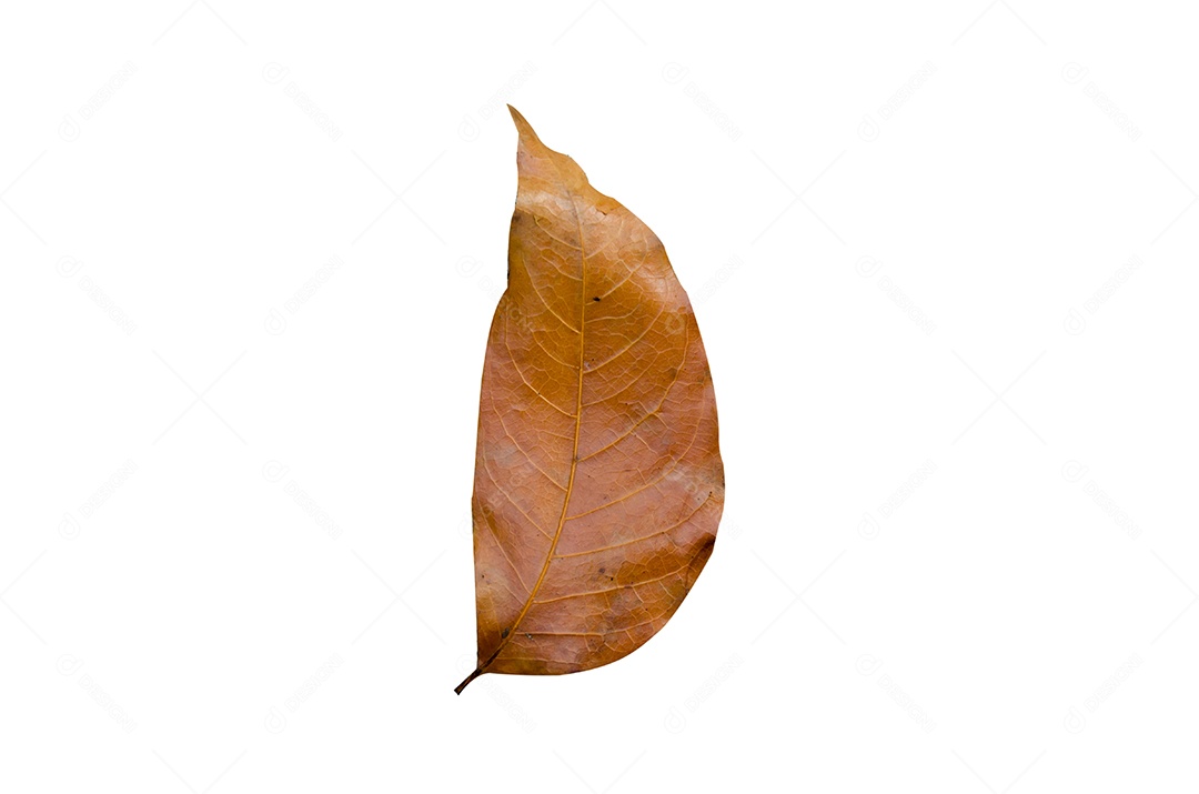 Folha seca isolada no branco.