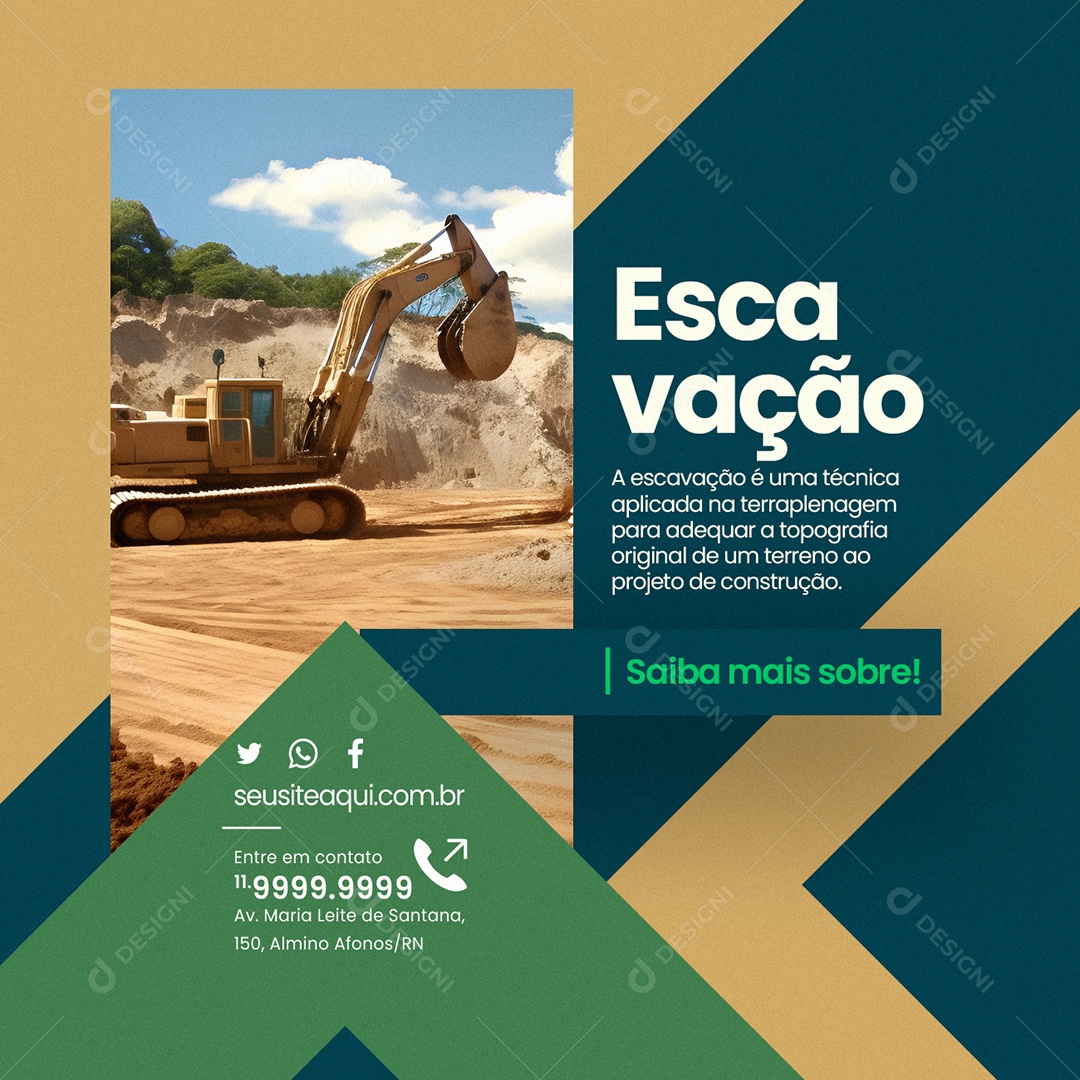 Terraplanagem Escavação Saiba mais Sobre Social Media PSD Editável