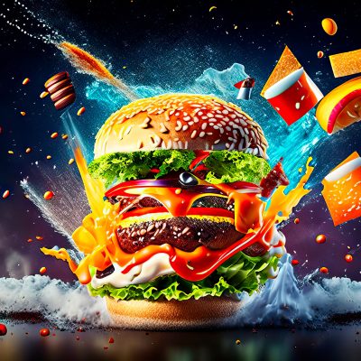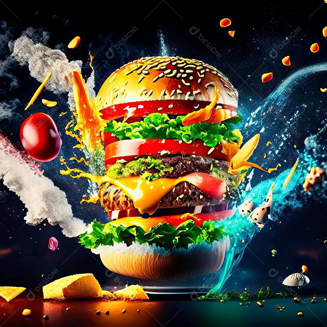 Retrato realista de Hambúrguer delicioso sobre fundo isolado