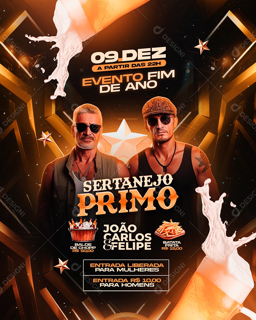 Flyer Ano Novo Evento Fim De Ano Sertanejo Primo João Carlos & Felipe Social Media PSD Editável