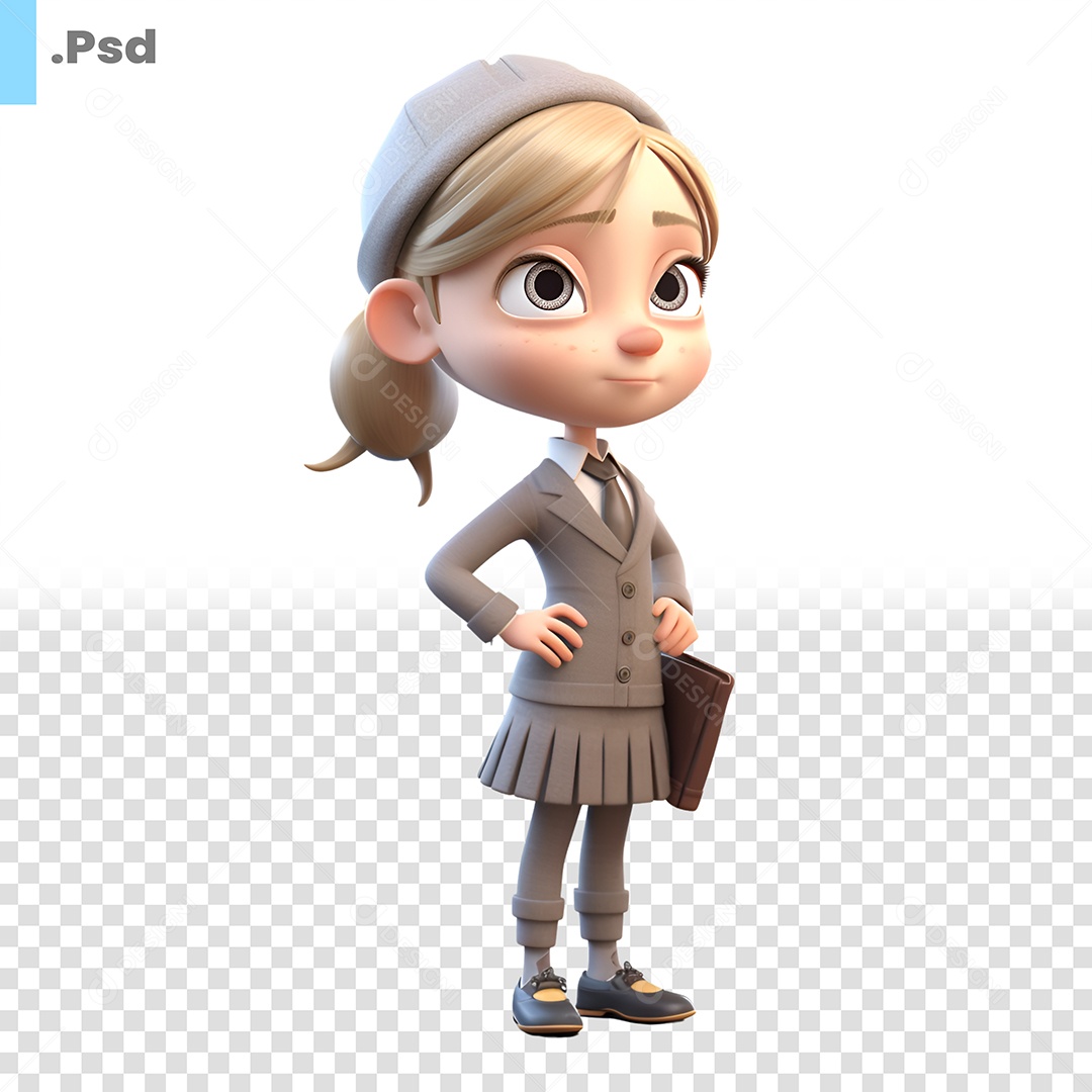 Personagem 3D Criança Menina Com Roupa De Escolar PSD