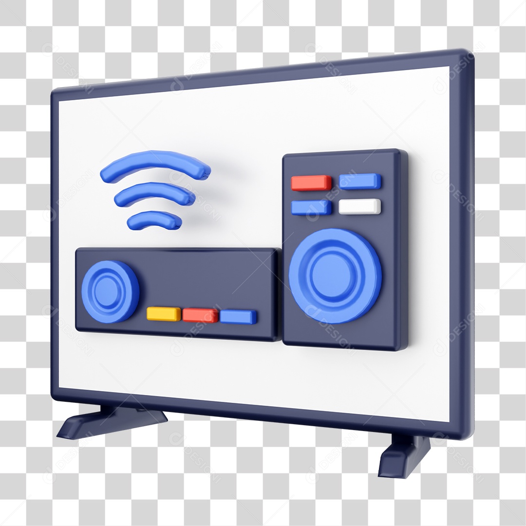 Smart Tv Com Ícone De Aparelho e Controle Elemento 3D PNG Transparente