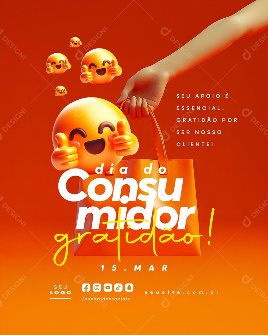 Dia do Consumidor 15 de Março Gratidão Social Media PSD Editável