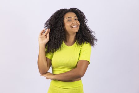Resultados da busca para Mulher jovem cabelo cacheado sobre fundo amarelo