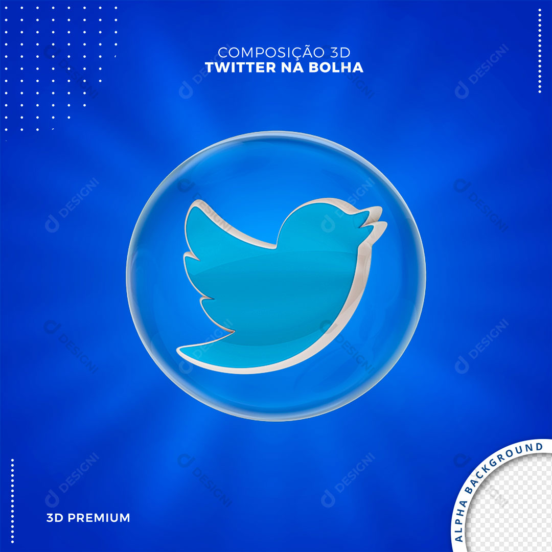 Ícone Twitter na Bolha Elemento 3D Para Composição PSD
