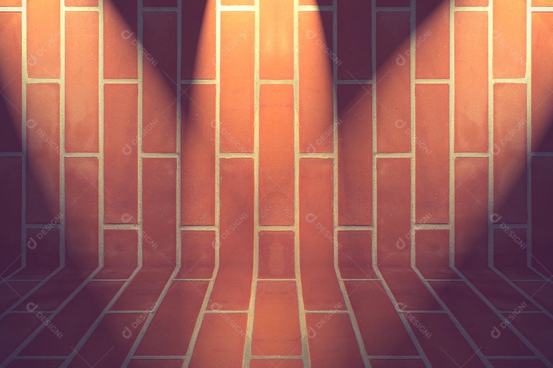 Parede de tijolos e três pontos de luz. Cor vintage.