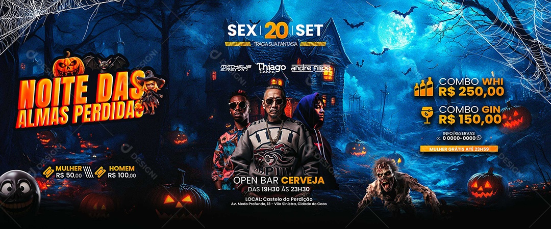 Carrossel Flyer Halloween Noite das Almas Perdidas Social Media PSD...