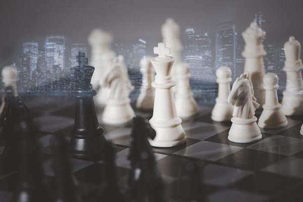 Conceito de ideias competitivas de estratégia empresarial com jogo ...