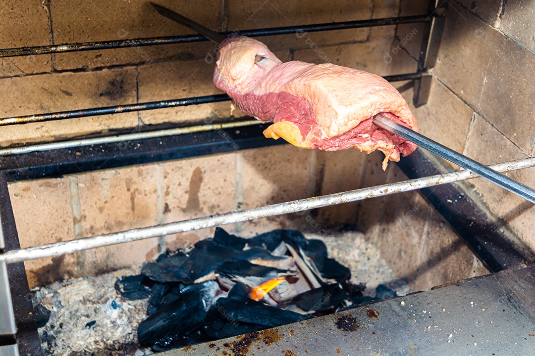 Ponta de peito ou peito no espeto preparando estilo brasileiro
