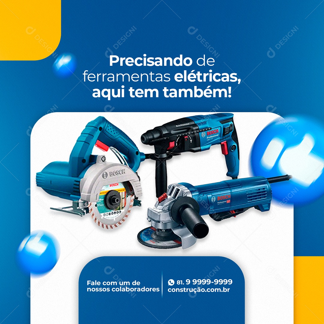 Precisando de Ferramentas Elétricas Construção Social Media PSD Editável