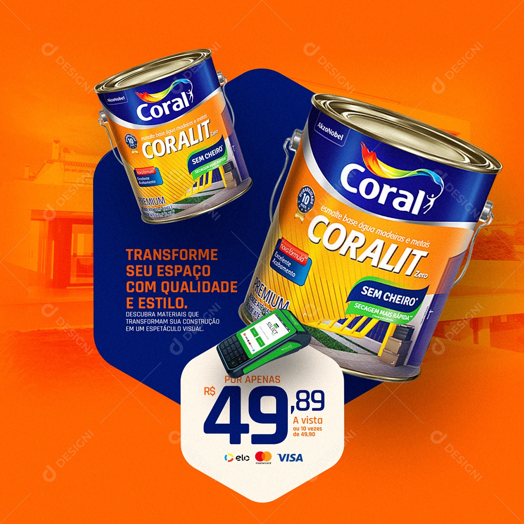 Materiais de Construção Lata de Tintas Coral Transforme seu Espaço com Qualidade e Estilo Social Media PSD Editável