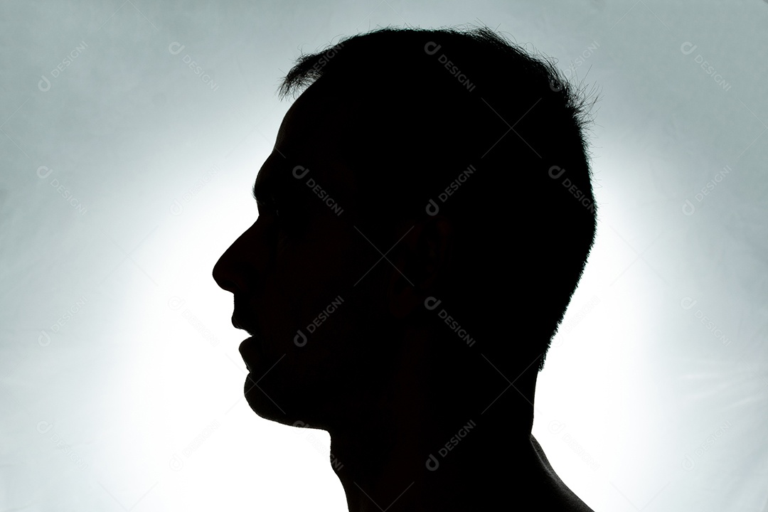 Silhueta do rosto do homem de 44 anos com a boca aberta.
