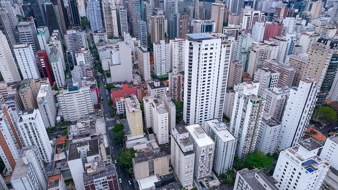 Muitos edifícios no bairro Jardins em São Paulo, Brasil. Edifícios residenciais