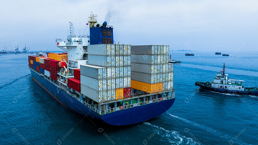 Popa da caixa de contêiner de exportação de importação de grande navio de carga.