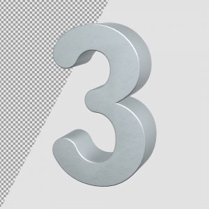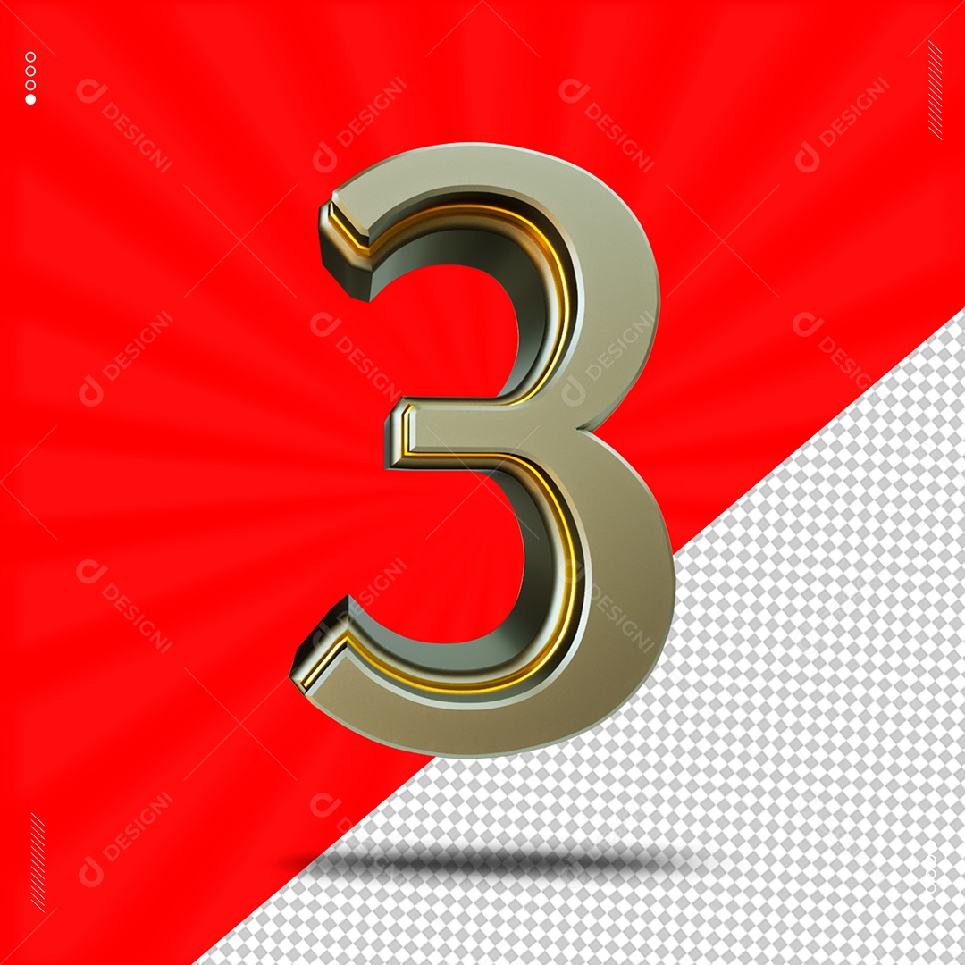 Número 3D 3 Cinza e Dourado Para Composição PSD