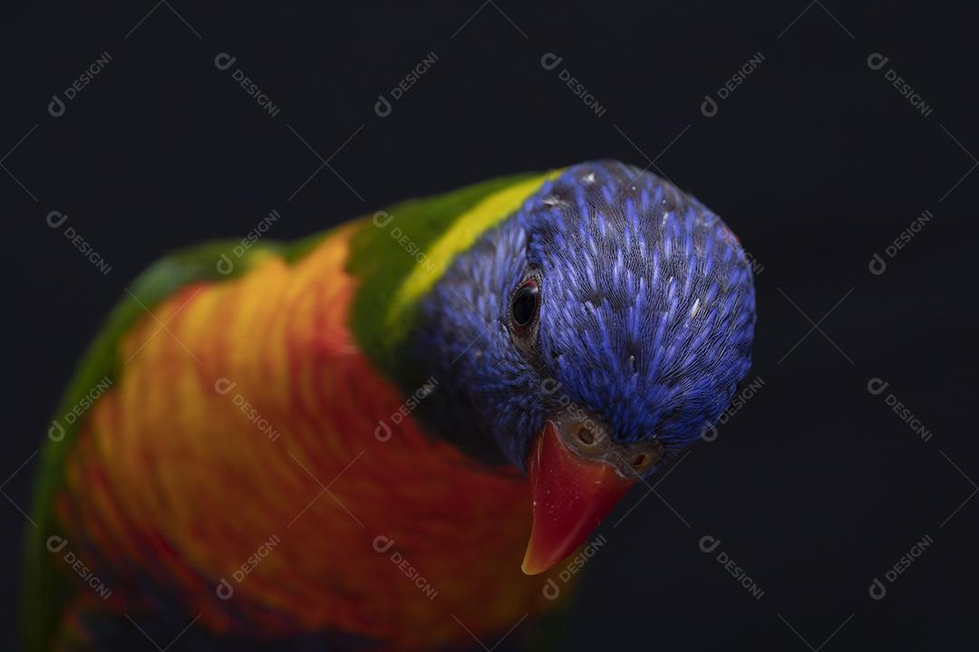 Fotos Papagaio Trichoglossus moluccanus na vara de madeira