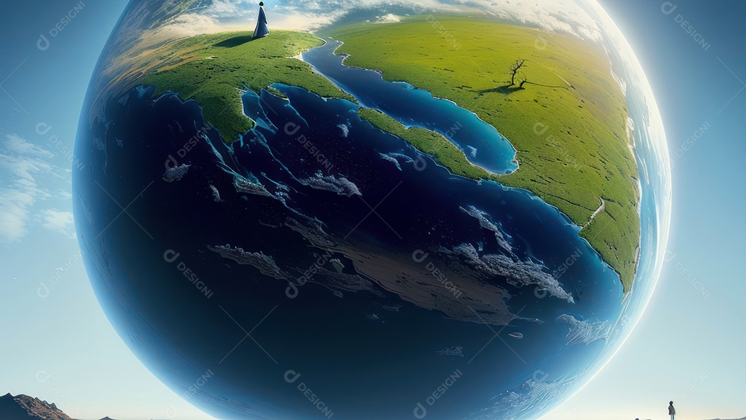 Imagem realista de pessoa caminhando sobre lindo lugar.
