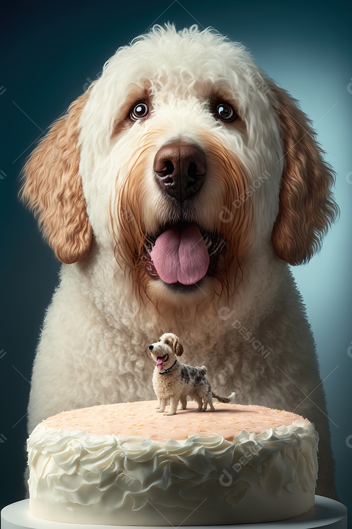 Retrato de um adorável cão doméstico comemorando um aniversário na ...