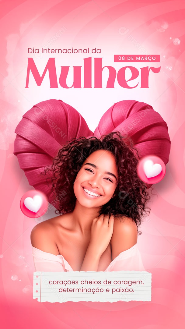 Story Dia Internacional das Mulheres 8 de Março Corações Cheios de Coragem Social Media PSD Editável
