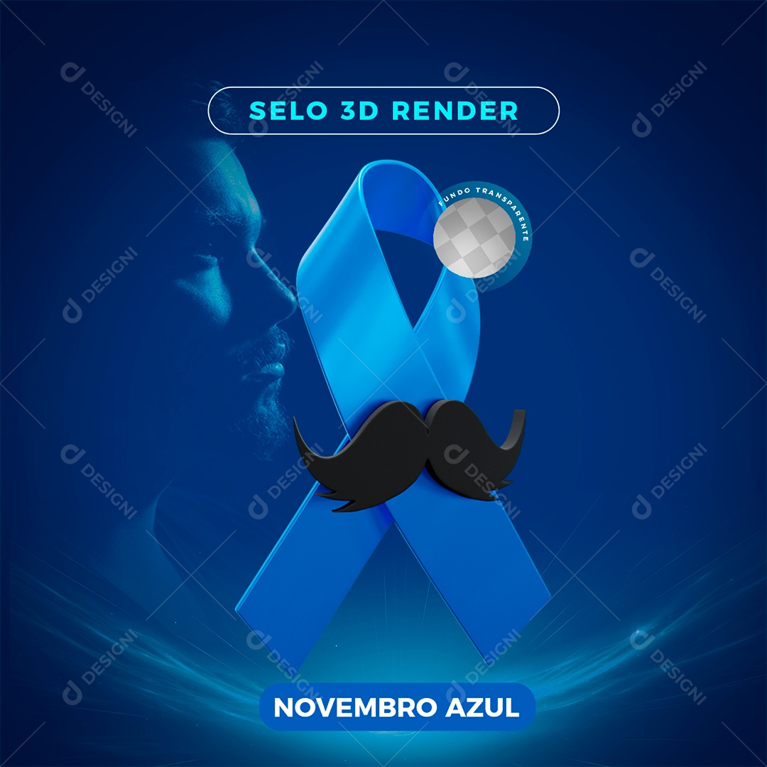 Banner Novembro Azul Laço Bigode Selo 3D para Composição PSD