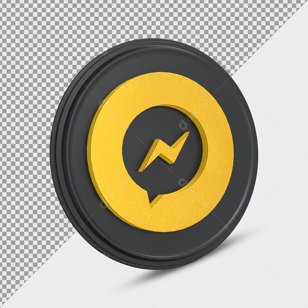 Ícone do Messenger Dourado e Preto Elemento 3D para Composição PSD