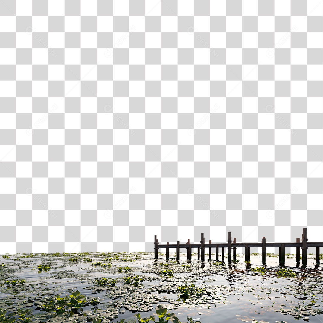 Passarela Sobre Lago com Varias Planta Aquática e Flores PNG Transp...