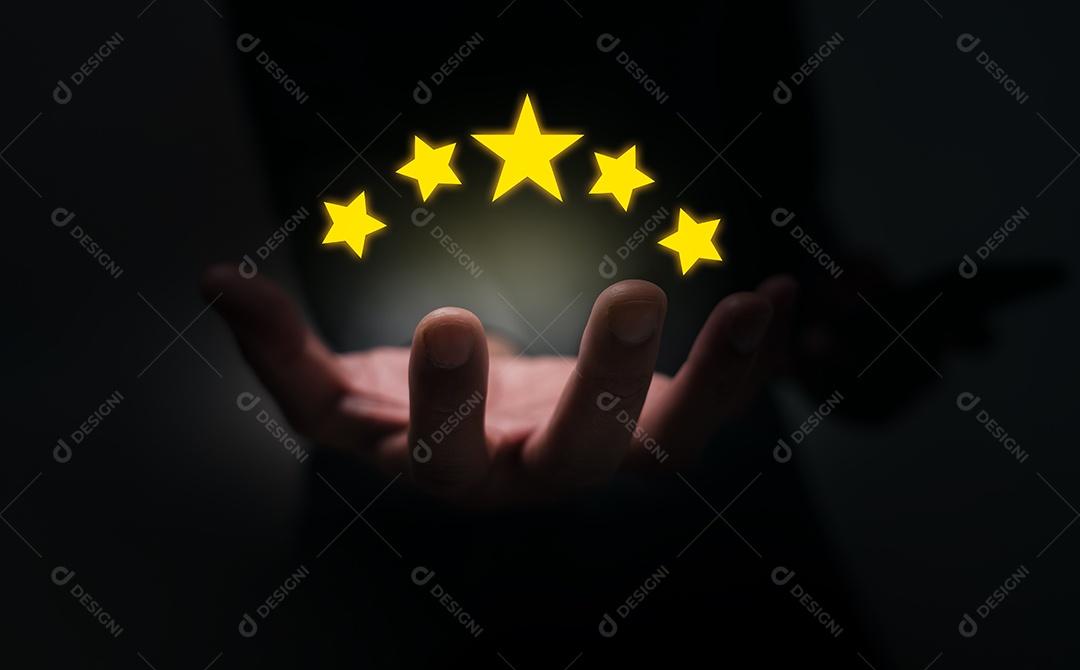 Conceito de pesquisa de feedback de satisfação de revisão do cliente, o usuário avalia a experiência de serviço no aplicativo on-line