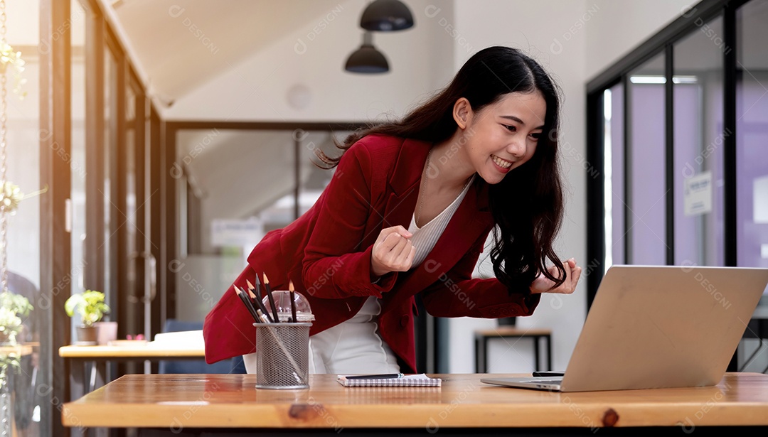 Retrato de uma mulher asiática de negócios de sucesso desfruta de sucesso