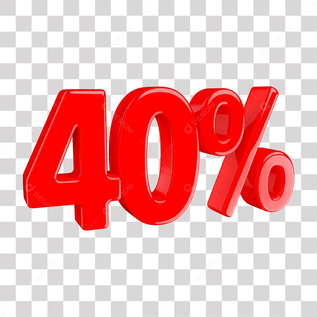 Número 3D 40% Vermelho Elemento Para Composição PNG Transparente Sem Fundo
