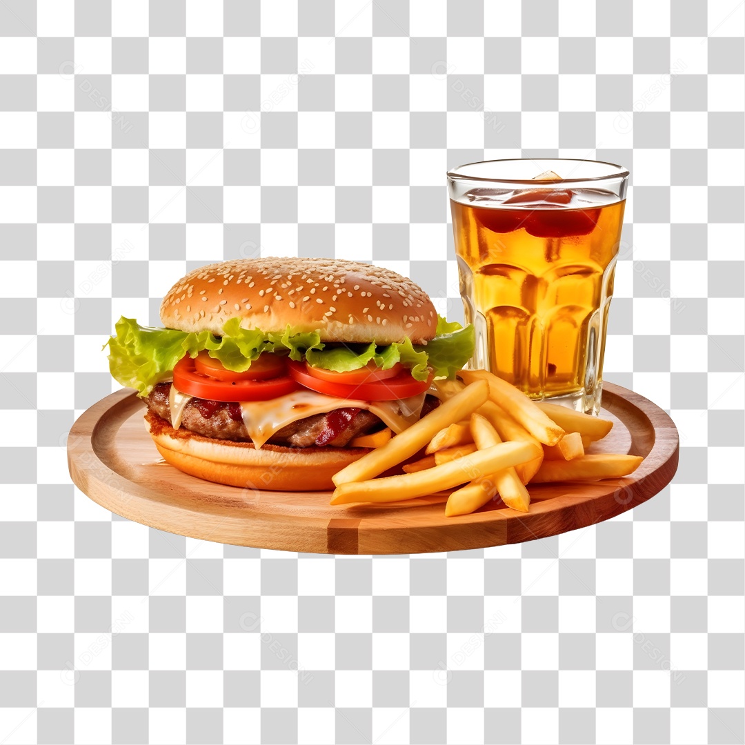Hamburguer Com Cerveja E Batata Frita PNG Transparente
