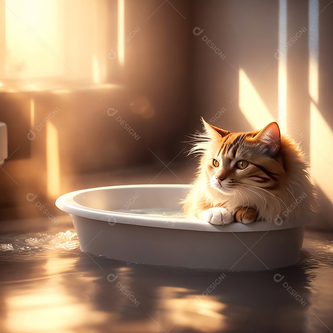 Lindo gatinho tomando banho